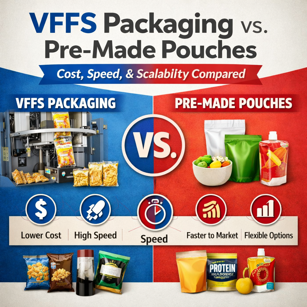 - Vertical Form Fill & Seal (VFFS) pouching for treats, snacks, powders